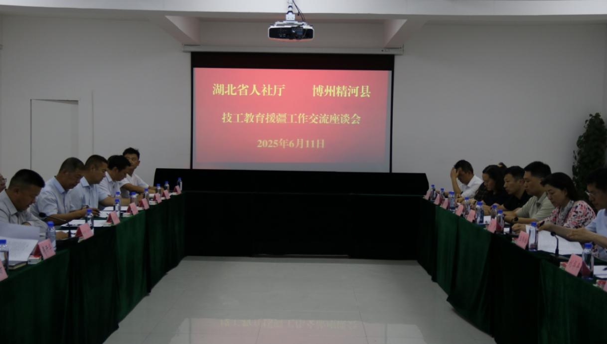 6月11日,湖北省人社厅调研组一行15人赴博州精河县技工学校就“组团式”援疆工作开展及技能人才培养进行专题调研,并在精河县技工学校召开人才培养援疆工作座谈会。博州党委组织部副部长、州人社局党组书记、副局长朱晓明,精河县委副书记、代理县长居马什•马力克,精河县人民政府党组成员、副县长吴开华,精河县委组织部副部长、人社局党组书记、副局长成方,援疆教师团队及学校领导参加座谈。