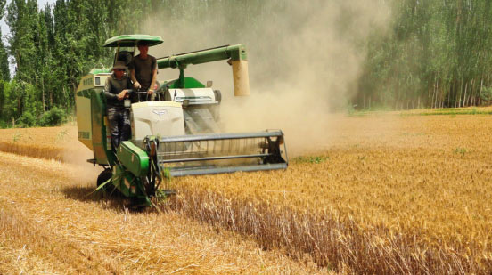墨玉县乌尔其乡霍什阿瓦提村党支部书记陈文说:“我们村一共种植2300余亩小麦,目前已经收割200余亩地,为了确保夏收不落一户、不漏一田,我们村提前摸排需求,全力保障小麦收割工作,提升收割效率和质量,真正做到颗粒归仓。”