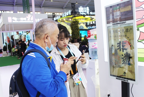 据了解,南博会开始以来,香道滇已在旅居云南馆开展了4个主题活动。吸引众多国内外游客目光。“香道滇平台以‘地标文化特产+乡村文旅康养’双主线,创新推出‘非遗文创’专属功能模块——非遗产品溯源系统,用户可通过触屏交互设备或手机APP,实时查看非遗文化、非遗小镇、非遗产品的历史背景,地标特产的地域特色或制作工艺及传承人故事。例如,点击广南六郎城村铁皮石斛,即可展示石斛鸡、石斛花茶等特色产品的生产场景与独特的壮乡文化。”香道滇展台工作人员介绍。