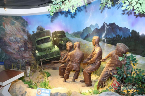 馆内生动展示当年机工在运输物资途中遇到的艰难险阻。赵利摄