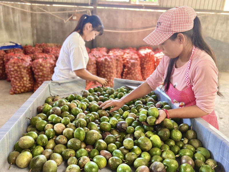 (合作社社员正在分拣百香果。龙正琼/摄)