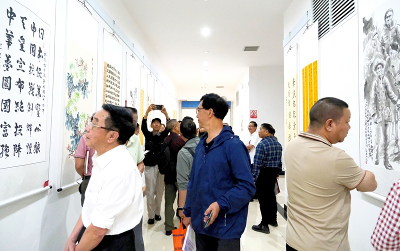 参展作品主题鲜明,题材多元,既有展现生态文明建设硕果的绿水青山图,更有定格城乡区域融合发展的温馨瞬间。作品形式创新,技艺精湛,涵盖书法、国画、油画、诗词楹联等多种形式,再现了烽火连天的历史场景,以血火淬炼的艺术语言警示后人:铭记“落后就要挨打”的深刻教训,引发观众强烈共鸣。