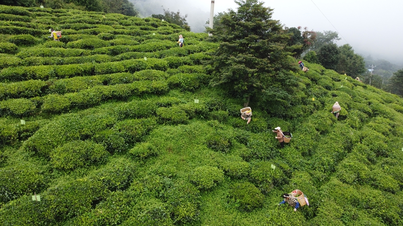 在双柏县法脿镇白竹山8000多亩的茶园里,连绵起伏的茶树葱葱郁郁,茶香沁人心脾。茶农们身背茶篓采茶,双手在茶芽间娴熟舞动。今秋的秋茶饱含雨露滋养,为保证茶叶品质,茶园每天吸纳附近40多名茶农到茶园采茶,按采收量计重、自选时段的方式给付薪酬,让茶农挣钱、养家两相兼顾。“我家就在茶山下面,平时就在家里面忙忙,到采茶季节就来这里采茶,这里上班时间自由,一方面增加收入,一方面又可以照顾到家里,我觉得这样挺好的。”茶农黄女士边采茶边说。