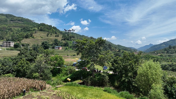 云南师宗县:无人机吊运为水稻丰收注入科技力量