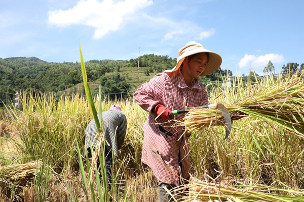 金秋九月,稻浪翻滚。云南省曲靖市师宗县高良乡河谷地带的水稻全面成熟,农户们抢抓晴好天气,开镰收割,确保稻谷颗粒归仓。