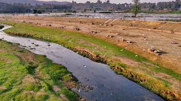 (元谋县龙川江中白鹭飞舞。元谋县融媒体中心供图)