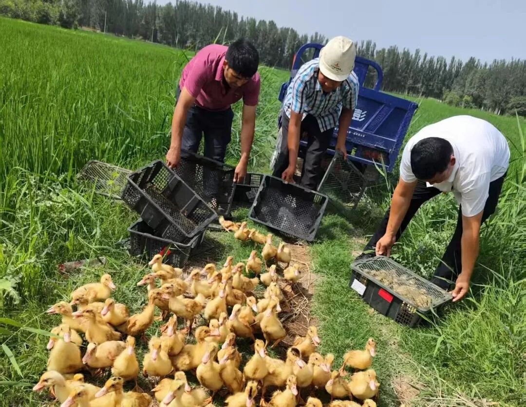 村民怕提古丽•图尔孙说:“我家今年种了20亩水稻,采用稻鸭共作模式后,水稻长势比往年更好。以前光化肥农药就要投入不少钱,现在鸭子帮我们除虫、施肥,省工省药还省心。等到鸭子长大出售,一亩地还能多赚几百元,真正实现双份收入!”