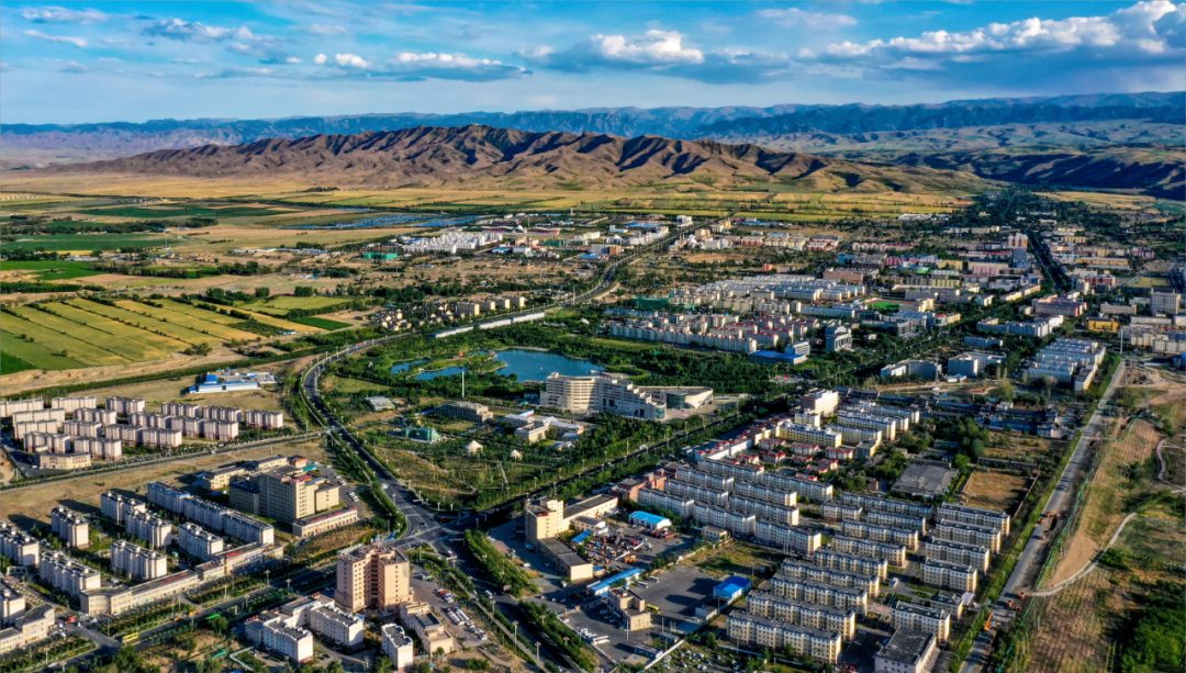 木垒县城俯瞰图。木垒县融媒体中心供图