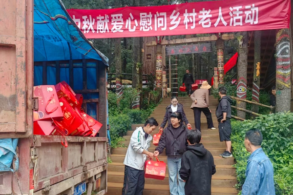 近日,云南西游洞旅游集团在昆明市松鹿部落风景区为嵩明、五华、西山等3个县(区)9个村的2000多名老人送去了总价值38万元的大米、食用油、月饼等节日慰问物资。