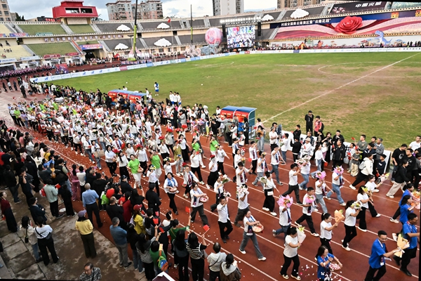9月27日晚,云南楚雄州体育场内灯火如昼、人声鼎沸,村超全国赛暨云南鲜花足球超级联赛(以下简称“楚雄花超”)在此圆满收官。这场以“鲜花为媒,足球为介”的特色赛事,自7月12日启幕以来,历时78天汇聚71支队伍、1661名运动员,216场赛事不仅点燃云岭大地的全民健身热情,更以体育为纽带串联起文化传承、群众参与与产业发展的多重活力,成为基层践行“体育搭台、文化铸魂、产业富民”的生动样本。
