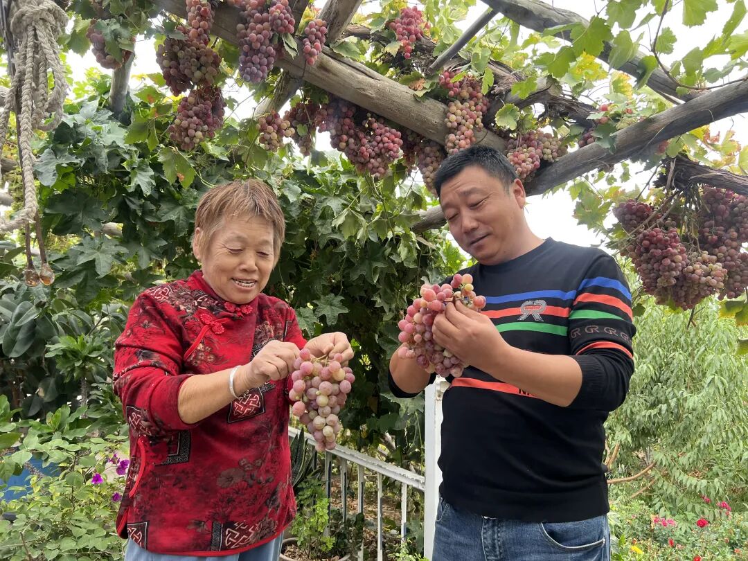 近日,在村民王建成家,庭院内果树成林、果实饱满。他正和父母采摘水果,这些果实很快将运往市场。“父母帮着打理院子,既能锻炼身体,还能多份收入。”王建成说,在村队的带动下,他种了葡萄、梨子等10余种果树,以采摘为主,一年有2万元收入。