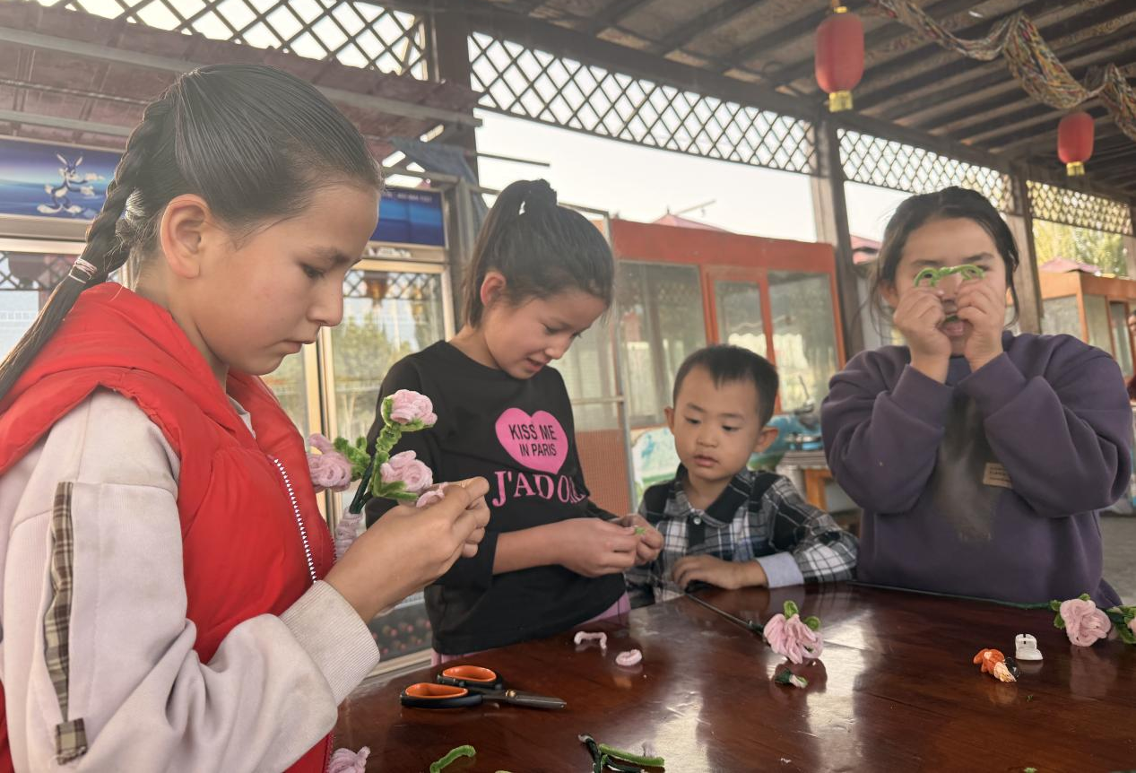 为丰富学生课余文化生活,培养其动手能力与创造力,同时增添节日氛围,近日,于田县阿热勒乡台克孜勒村组织村内学生开展了一场以“巧手生花”为主题的手工活动,志愿者全程参与指导。