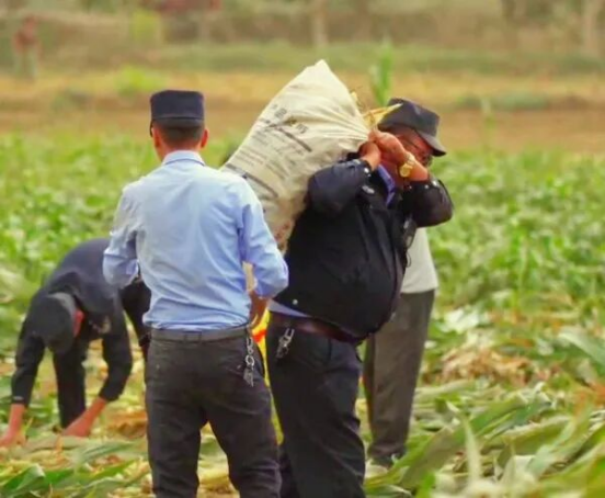 同时,墨玉县公安局乌尔其乡派出所民辅警也成立“助农小分队”,下沉田间地头,帮助农户抢收玉米。在乌尔其乡的玉米地里,大家迅速分工、默契配合,整个田间呈现出一派热火朝天的劳动景象。