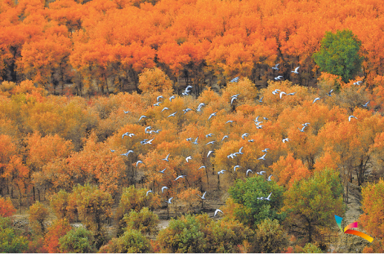 叶尔羌河流域定期向下游输水,沙漠腹地的巴楚县胡杨林生态良好,吸引各类鸟类落户巴楚。(资料图)高守东 摄
