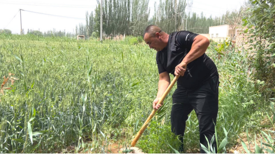 村民正为自家的麦田浇水。艾孜海尔 摄