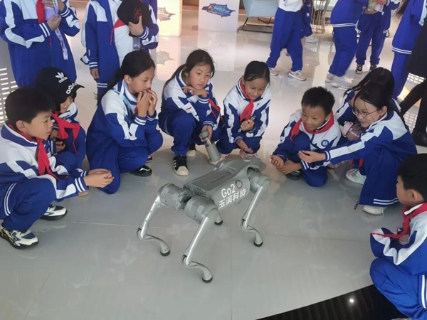 机器狗表演更是科技馆里的一道亮丽风景线,它一会儿灵活地翻着跟头,如同技艺高超的杂技演员;一会儿又憨态可掬地向大家比爱心,惹得观众哈哈大笑,现场不时爆发出阵阵惊叹声和热烈的掌声,整个氛围热闹非凡,充满了欢声笑语。