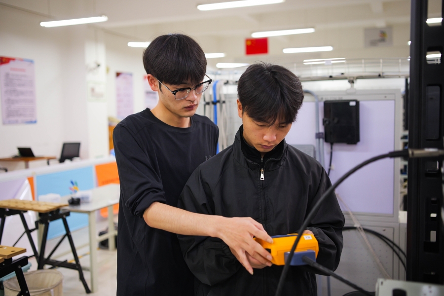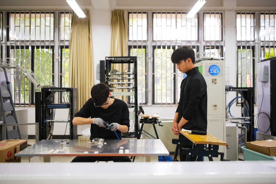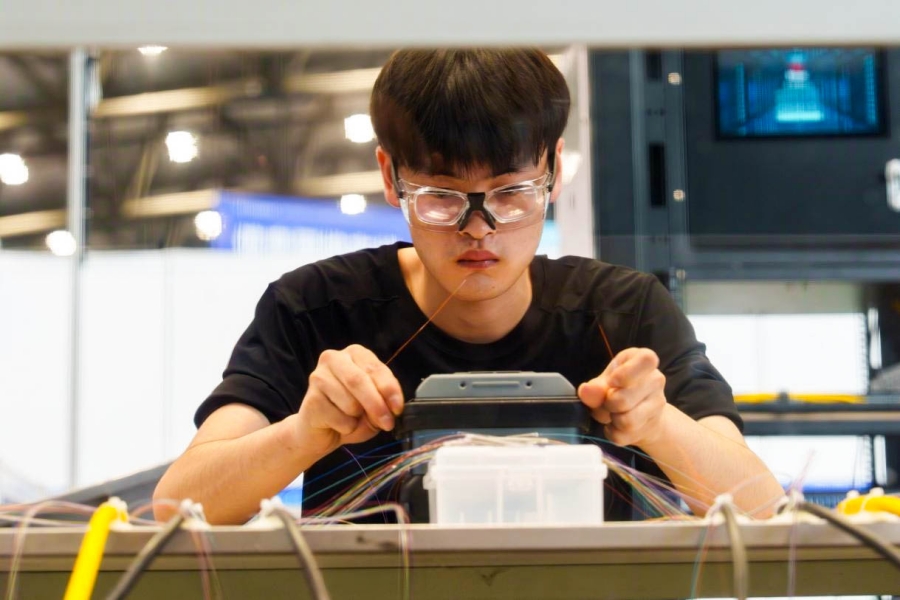 “在此次比赛中,最为紧张的时刻莫过于整条光纤链路铺设完毕后进行的福禄克认证测试。与平日训练不同的是,此次使用了新的熔接机,无法完全确保能否满足认证测试的标准。在接通测试仪的那一刻,内心依然感到忐忑不安。”蒋忠何坦言,国赛的舞台上他能及时调整心态寻求解决方案,这源于赛前漫长的训练过程所积累的备赛经验。
