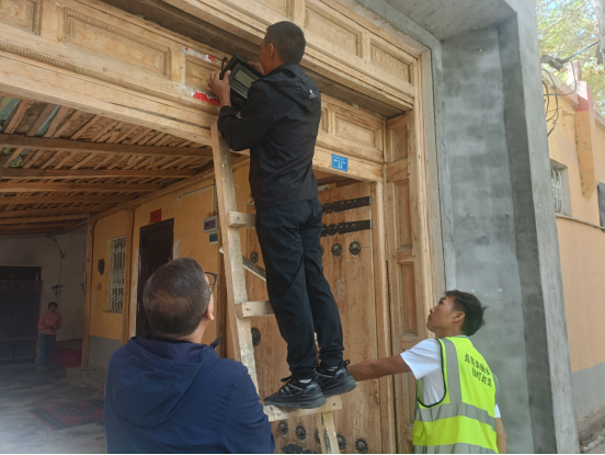 工作人员与志愿者组成专项服务小组在为残疾人家庭安装灯。伊帕尔古丽 摄
