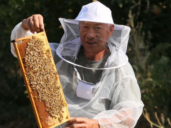英格堡乡庙尔沟村养蜂人马正新展示蜂巢。姜巍 摄