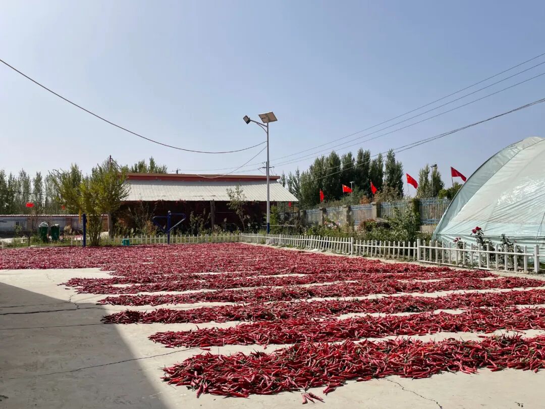 “不用出远门,在村里摘辣椒一天就能挣100多元,还能照顾家里的老人和孩子,特别踏实。”村民古丽尼沙•依尔兰说。辣椒的大丰收,不仅让“盐碱地变丰产田”成为现实,更让辣椒产业成为带动发展“新引擎”,为村集体经济开辟了持续增收渠道,也为村民搭建了家门口的就业平台,实现了“群众得实惠、集体有收入”的互利共赢。