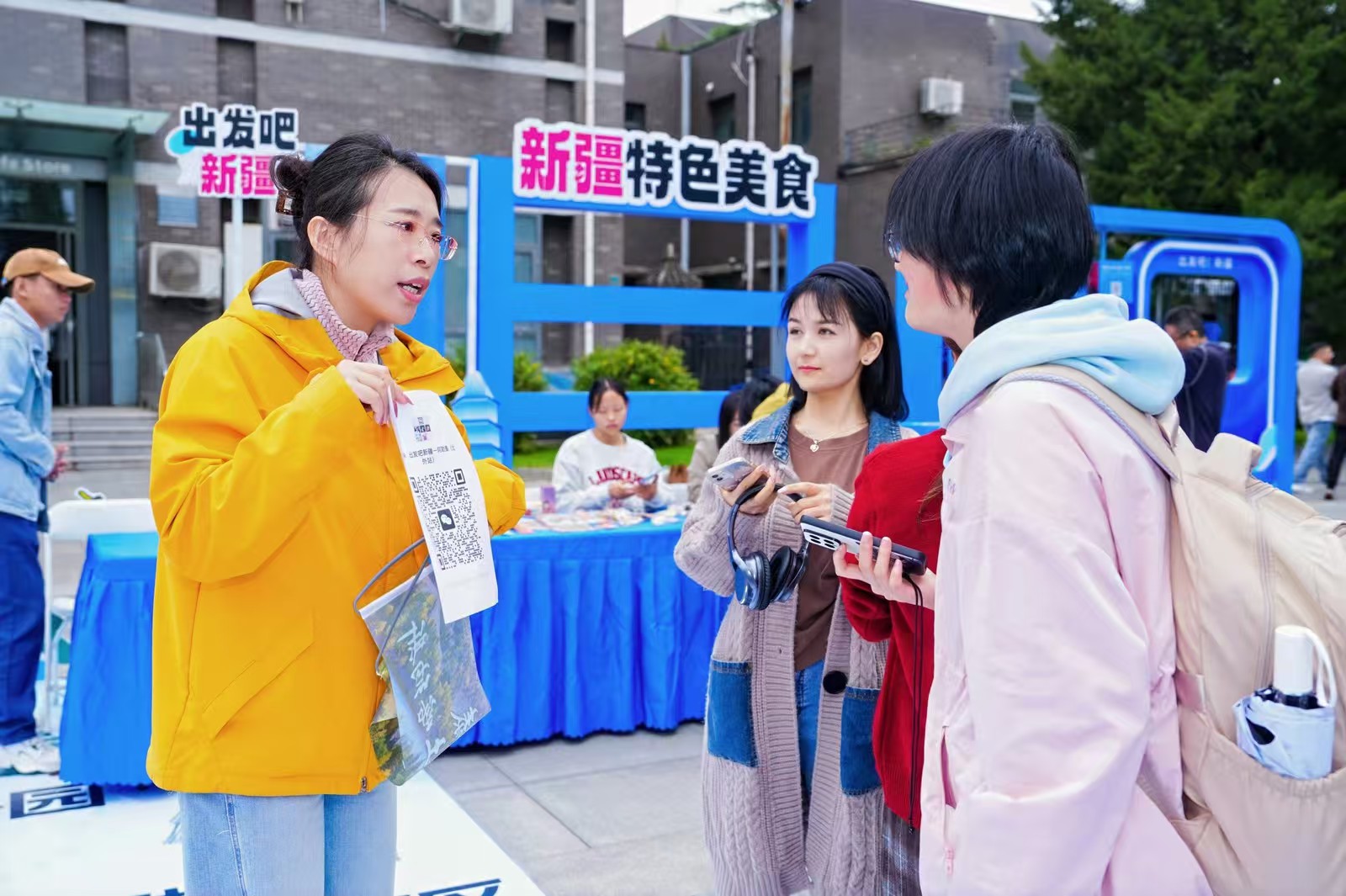 12日,在北京外国语大学同步开启“光影新疆•万里入镜”摄影展与“疆潮来袭•Young力全开”市集,设置了“雪都驿站”滑雪小游戏、打卡集章、地州文创展示与赠票三大互动活动,吸引了众多高校学子与市民踊跃参与。现场有文创手办、民族服饰、手工香片、果糕美食等逾百种、近千件展品和礼品,并送出可可托海、那拉提等数十家景区数千张景区门票,实现“边玩边拿奖”,新疆冬游的 youthful形象在社交平台刷屏。