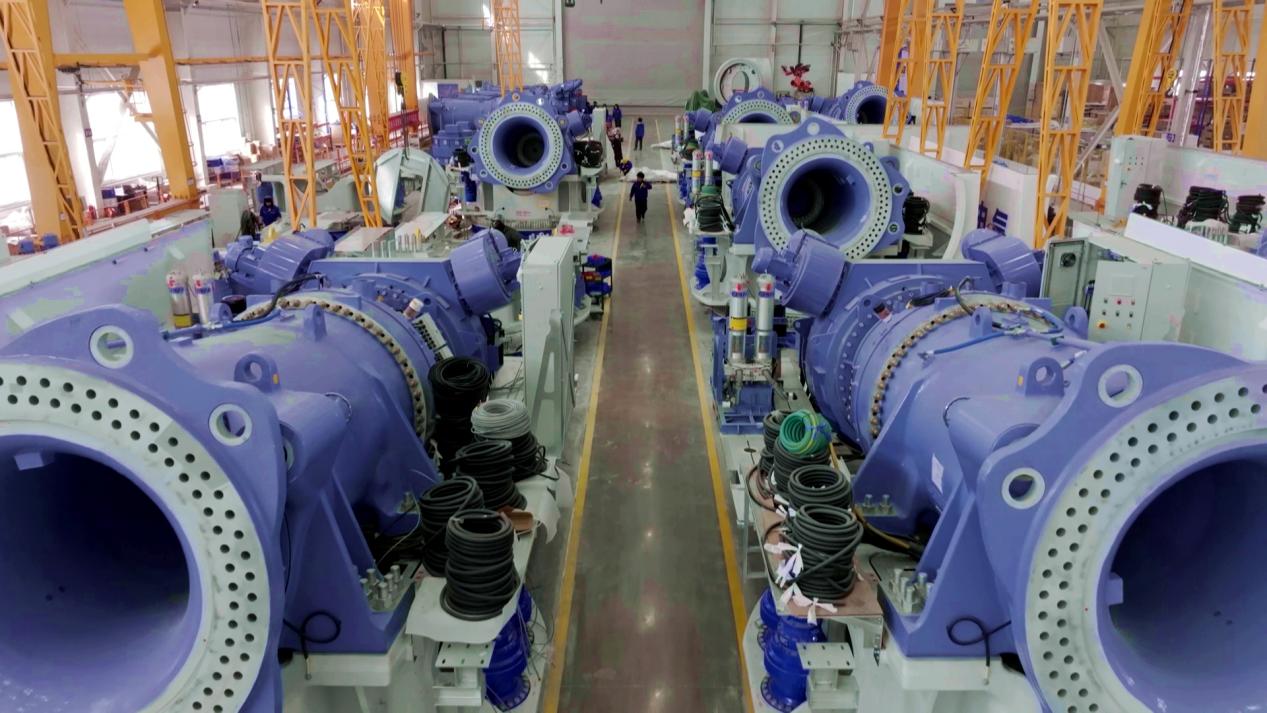 近日,在新疆东方风电新能源有限公司主机生产车间,工人们正在组装风机主机,全力保障订单交付进度。王梦君摄