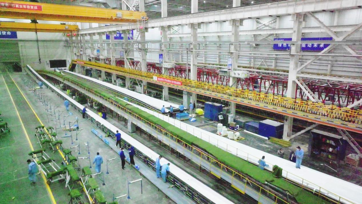 近日,在新疆东方风电新能源有限公司叶片生产车间,工人们正忙着组装、打磨风机叶片,生产线一派忙碌景象。王梦君摄