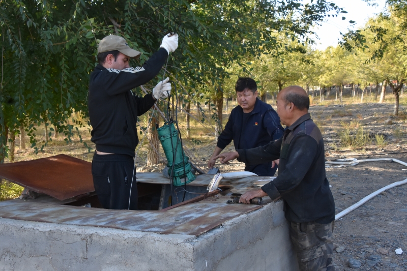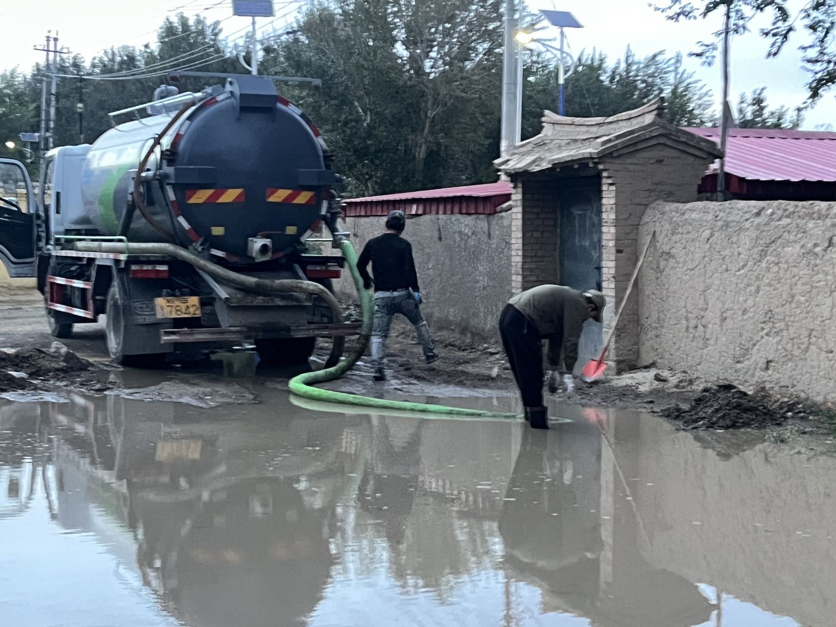 了解情况后,工作队和村干部及时制定抢修方案。为及时和彻底解决该问题,驻村工作队第一书记、队长叶盖•哈利木带领工作队员和村干部们,一边协调环卫吸水车清理观察井、被淹路面的积水和垃圾,一边由驻村工作队利用为群众办实事经费,出资2000多元重新购置了污水泵,并聘请专业人员对提升泵站内的所有受损设备进行了抢修恢复。