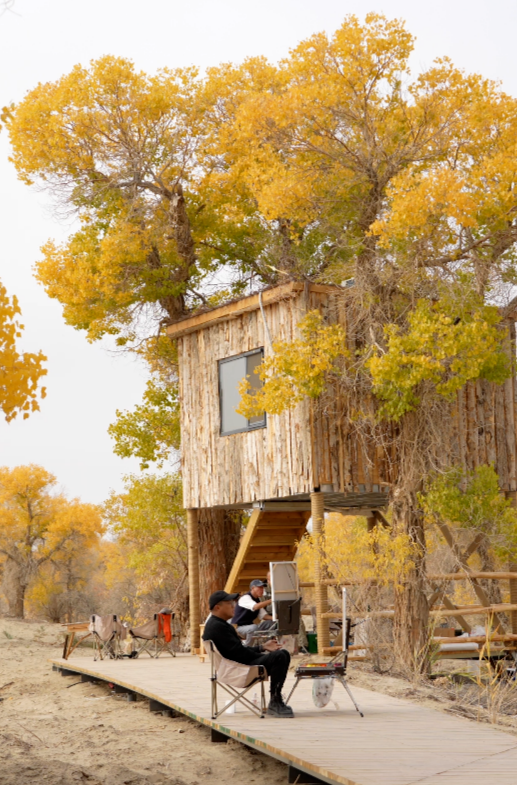 3. 10月9日至24日,邀请中国美术家协会知名画家举办罗布人村寨金秋胡杨写生直播活动。