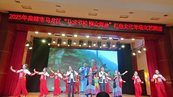 在马龙区党群服务中心一楼的民族团结进步舞台上,每天下午2点至4点,都能欣赏到各族群众表演的器乐、歌舞,每个月最后一个周五晚上7:30分,观众翘首以盼的文艺演出总能如约而至精彩上演。这个1000余平方米的舞台,已成为马龙区各族群众文化展示、情感交流的重要平台。
