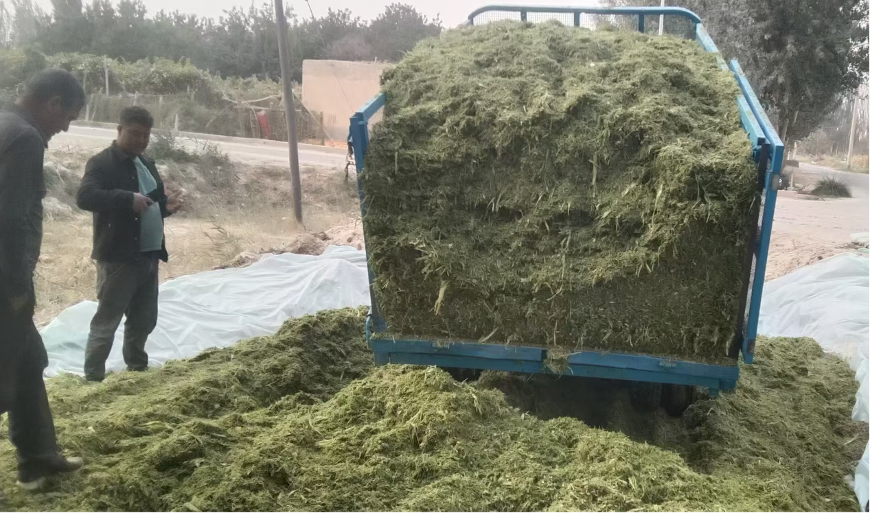 青贮技术,正是托格拉克村激活畜牧产业的“金钥匙”。村“两委”提前邀请技术人员驻点指导,从优质玉米、苜蓿等原料的筛选,到把控厌氧发酵的关键参数,再到紧盯粉碎粒度、压实密度等细节——技术人员俯身仔细查看饲料粉碎的成色,手把手地教村民掌握操作要点,让“最大化留存粗蛋白、提升适口性、减少牲畜疾病”的科学理念,随着每一道工序深深扎根在村民心中。