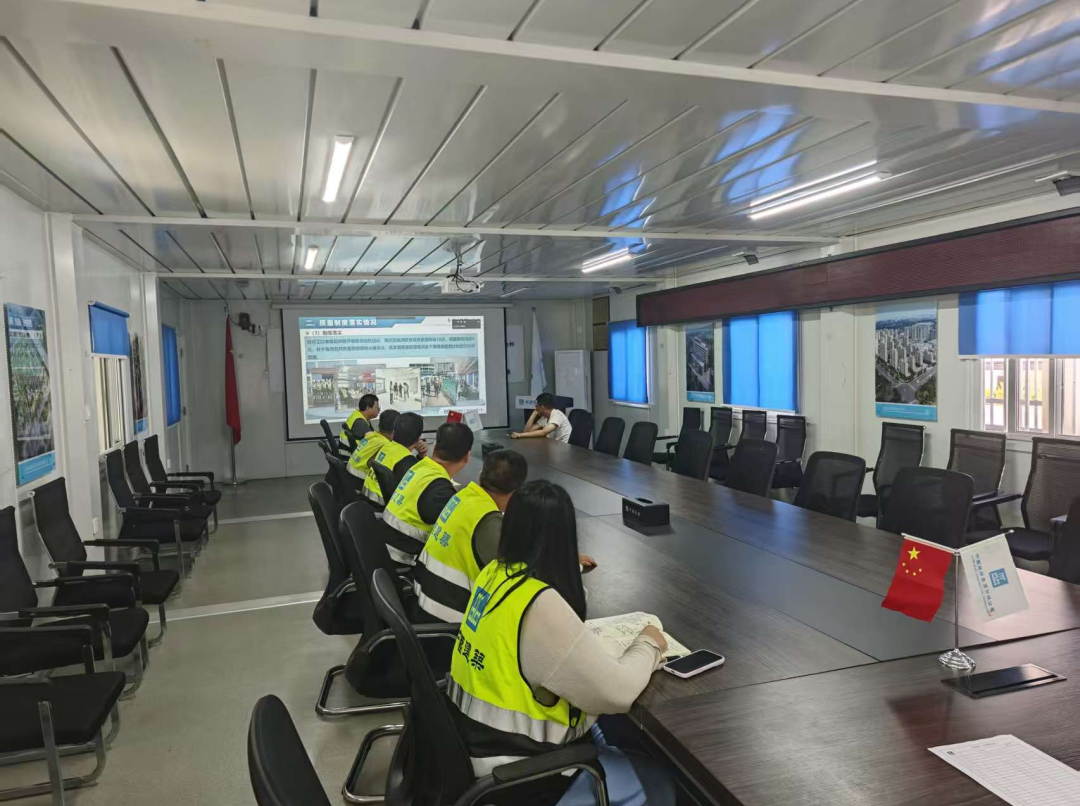 各项目将“质量月”活动作为提升工程品质的重要契机,积极组织管理人员及一线班组长开展集中宣贯,进一步强化全员质量责任意识。围绕现场施工的关键流程,以“严格遵循规范、精准把控工序、坚守质量底线、全力打造精品”为核心承诺,推动质量主体责任落实落地,凝聚起“质量人人有责、细节处处见品质”的共同理念。现场通过悬挂主题横幅、设置专题展板等多种形式,营造出浓厚的“质量月”活动氛围,有效引导一线作业人员作业践行标准,使质量意识深入人心。