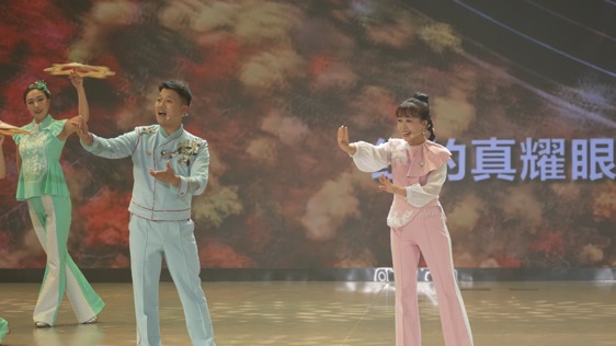 “共筑中国梦”篇章中,《小白杨》的经典旋律唤起观众的家国情怀;铁岭市民间艺术团的二人转表演唱《援疆二十年》,生动再现了援疆干部人才的实干身影,将“石榴籽”般的民族团结情谊融入歌舞之中。演出现场掌声不断,线上直播间也吸引了众多观众互动点赞,共同见证这场跨越千里的文化对话。