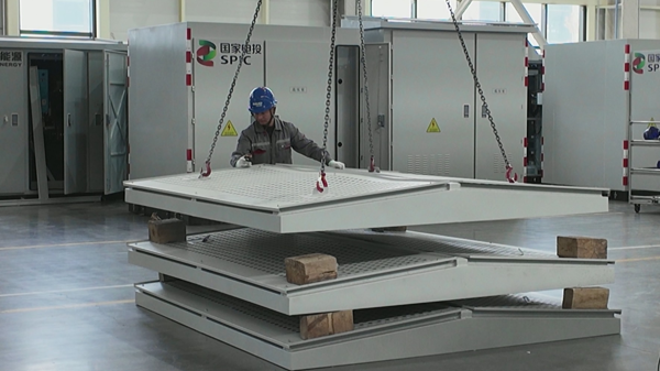 近日,新疆双杰新能源有限公司生产车间内,工人们正在箱式变压器生产线上进行组装工作。巨浩摄