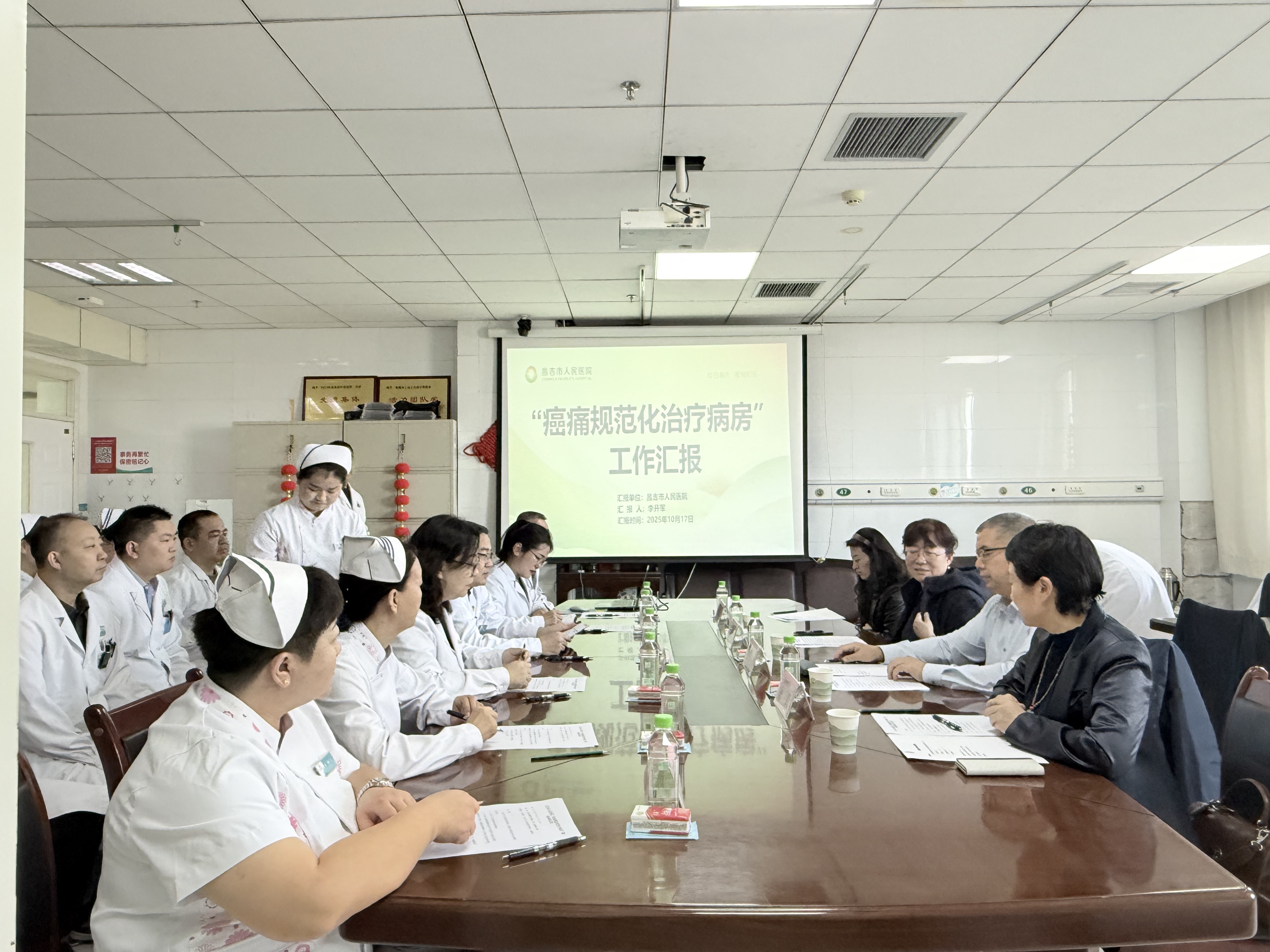 昌吉市人民医院对自治区专家组“癌痛规范化治疗病房”复审工作进行汇报。薛瑾摄