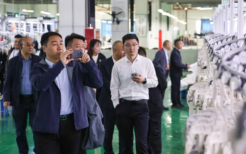 企业家代表在和田纺织服装企业考察。许晓龙摄