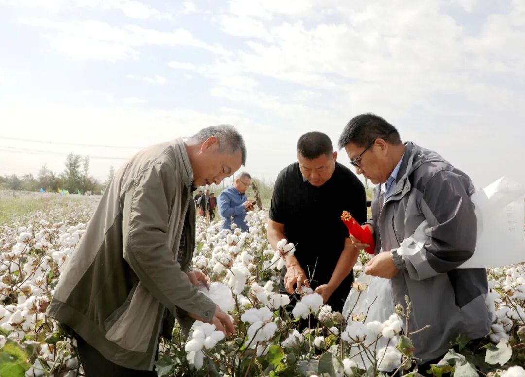 座谈会上,莎车盐碱地改良示范田负责人介绍盐碱地改良情况和治理后的显著成效,与会人员共同分享了盐碱地改良技术及外地成功案例。随后,参会人员前往示范棉田进行实地观摩,依据科学标准随机选取样点,通过测、量、查等方式,对土壤盐碱度、棉花密度、株铃数、铃重等关键指标进行测定,顺利完成测产工作。