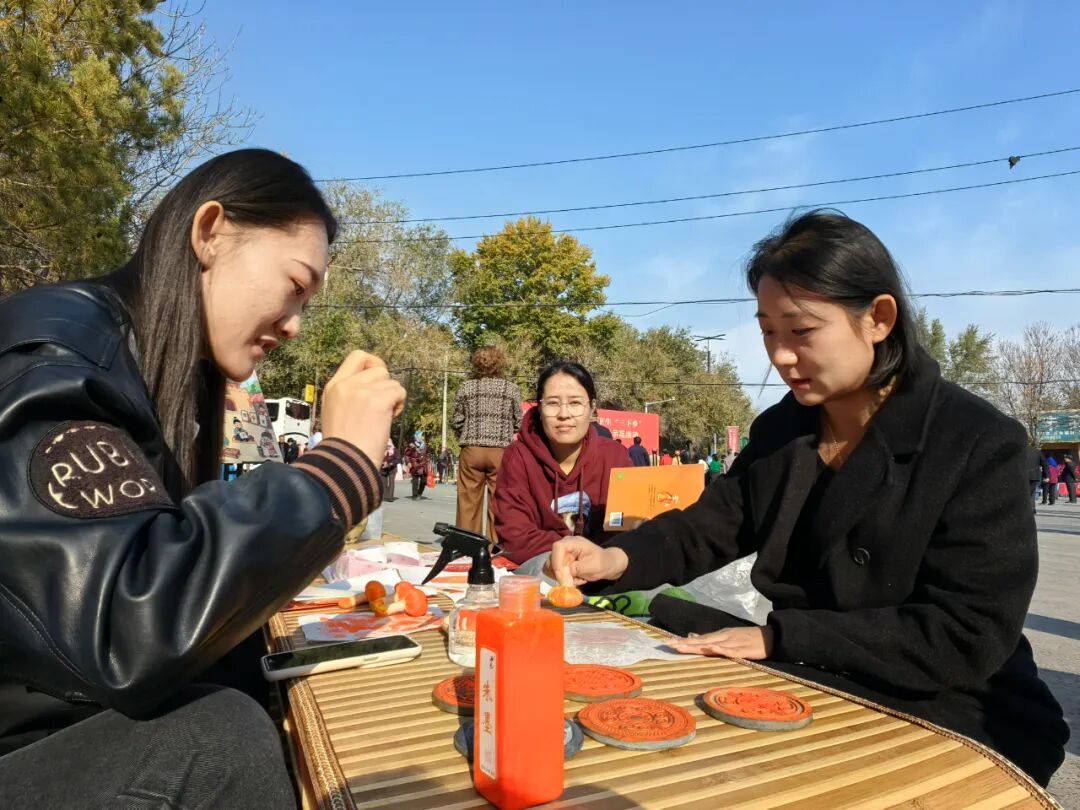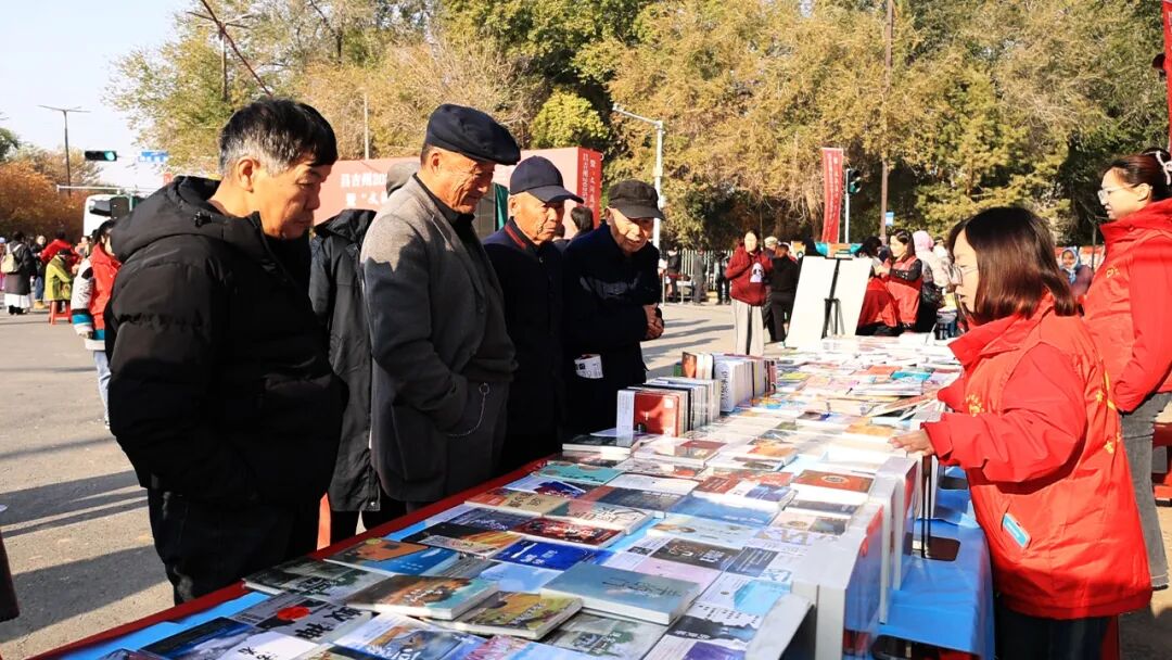 文化惠民区内,非遗展销台前,剪纸、刺绣代表性传承人现场教学;“瓦当拓印”体验活动吸引了不少小朋友;昌吉州图书馆的灯谜竞猜与吉木萨尔县图书馆的流动图书展位前排起了长队。