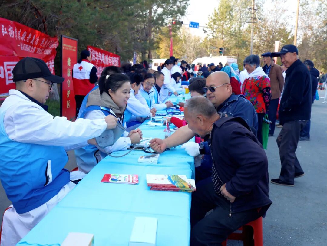 义诊台前群众有序排队,内科、针灸、康复等科室专家耐心接诊;医护人员手把手指导村民练习心肺复苏等急救技能;一旁的爱心义剪专区,理发师正专注地为老人修剪发型,温暖流淌于细节之间。