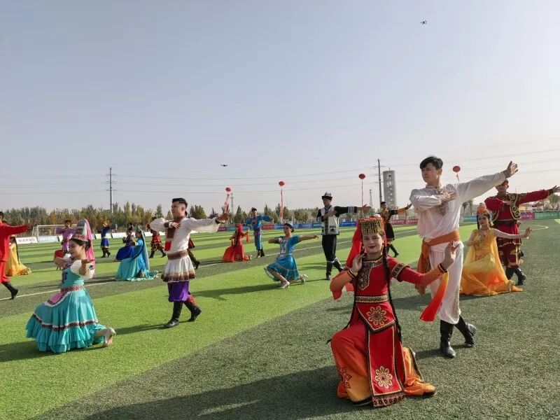 开幕式后,精彩的文艺演出接连上演。墨玉县500名学生表演了活力满满的足球操《舞动青春》;新疆知名歌手阿迪力江•麦麦提敏及团队献唱《新疆人爱新疆》;新疆马路牙子乐队演绎《相信自己》《我爱你中国》,点燃全场热情;另有500名学生表演武术操《弟子规》,展现出传统文化魅力。演出结束后,领导嘉宾为揭幕战开球,赛事正式进入竞技环节。
