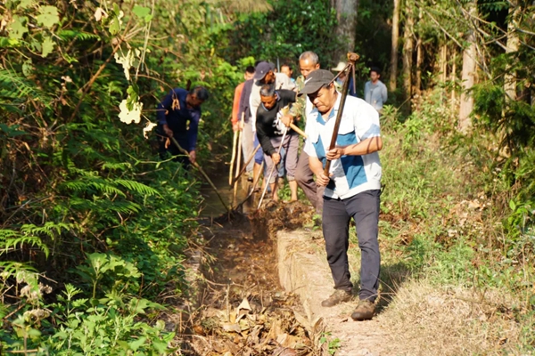 (李万西带领村民清理沟渠。墨江县融媒体中心/图)
