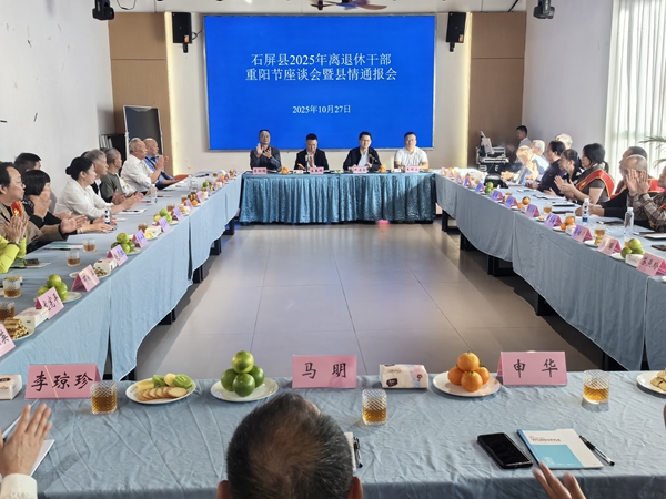 调研结束后举行了“2025年重阳节座谈会暨县情通报会”,通报今年以来全县在经济发展、社会事业、民生保障、基础设施建设等方面取得的进展、面临的挑战以及下一阶段的工作思路和重点任务。老干部们畅所欲言,回顾奋斗历程,分享生活感悟,并围绕石屏县经济社会发展、民生改善、老年人服务保障等工作提出宝贵的意见和建议。