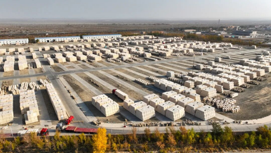 当前正值新棉加工、皮棉入库交售旺季,位于精河国际公铁联运综合物流园的新疆西部海祥棉花有限公司内一派繁忙,博州各地轧花厂纷纷将加工好的皮棉运送至此,高效办理入库、公检手续,助力新棉快速流通发往全国各地。