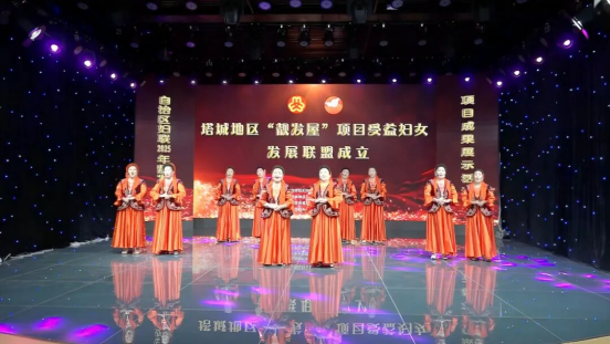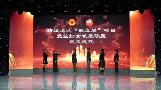 在“靓发屋”项目受益妇女发展联盟启动仪式上,马丽宣读倡议书,号召妇女共享机遇;塔城地区女企业家协会、巾帼志愿阳光站托里县代表发表响应宣言,表达合作支持意愿。