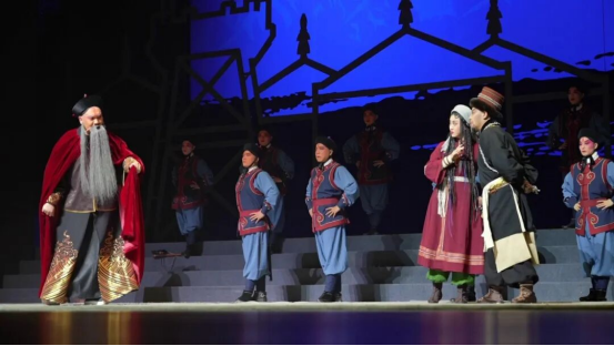 新编历史京剧《故土新归》在阿克苏地区塔里木歌舞剧团演播厅精彩上演。王旭 摄