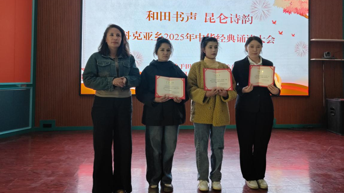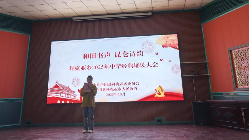 近日,“和田书声 昆仑诗韵”中华经典诵读大会在于田县科克亚乡开展。活动以“读经典 颂国韵”为核心,让中华优秀传统文化在乡土间落地生根。