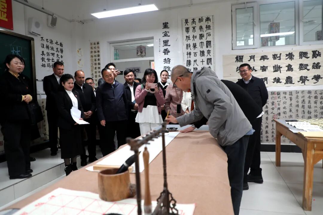 书法教室内墨香袅袅,十余名学生凝神静气,专注地在宣纸上挥毫,从工整的楷书到流畅的行书,一幅幅充满艺术韵味的作品依次陈列。代表们驻足细看,对学生的学习热情和创作成果给予高度评价。
