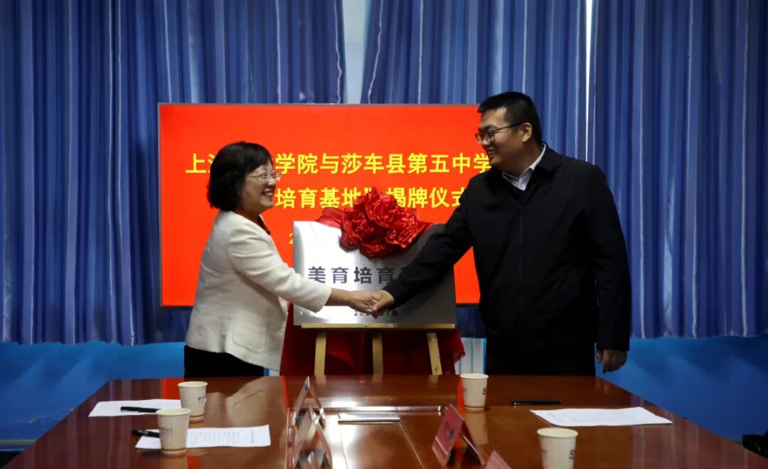 仪式上,上海美术学院负责人与莎车县相关领导共同为“美育培育基地”揭牌。双方表示,将加快推进美育课程合作,确保基地资源切实惠及广大师生。