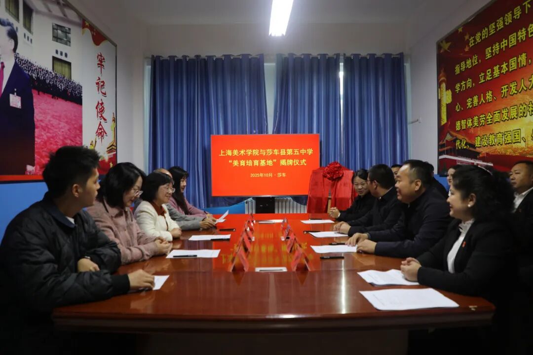 近日,上海美术学院“美育培育基地”揭牌仪式在莎车县第五中学举行。该基地的建立,为莎车县美育教育搭建了专业化的交流平台,标志着上海与莎车两地美育资源共享与协同育人合作进入高质量发展新阶段。莎车县相关领导出席仪式。