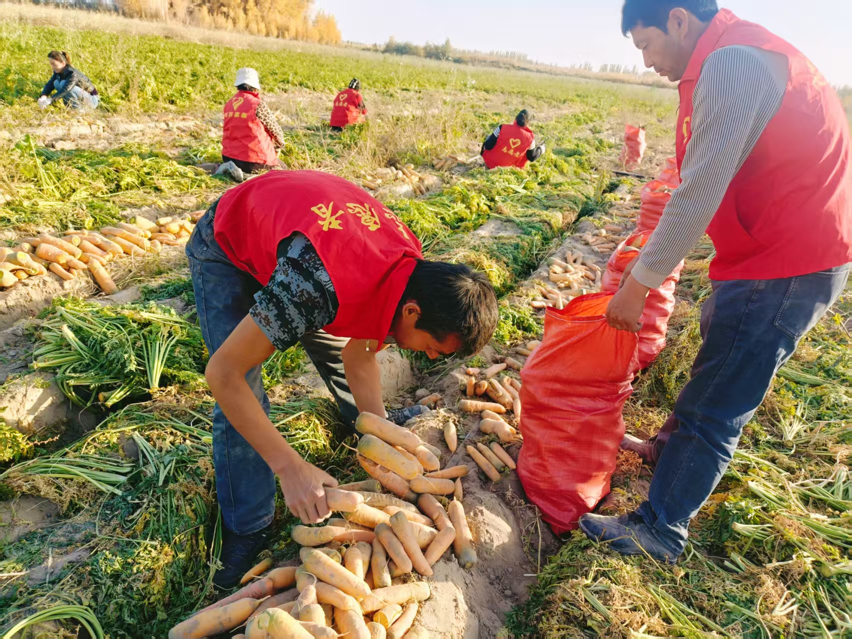 金秋时节,于田县托格日尕孜乡乌尊博孜村的胡萝卜种植基地里呈现出一派繁忙景象。由驻村工作队队员、村干部以及党员志愿者共同组成的“红色志愿队”,在田间地头开启了胡萝卜采收的“加速度”。